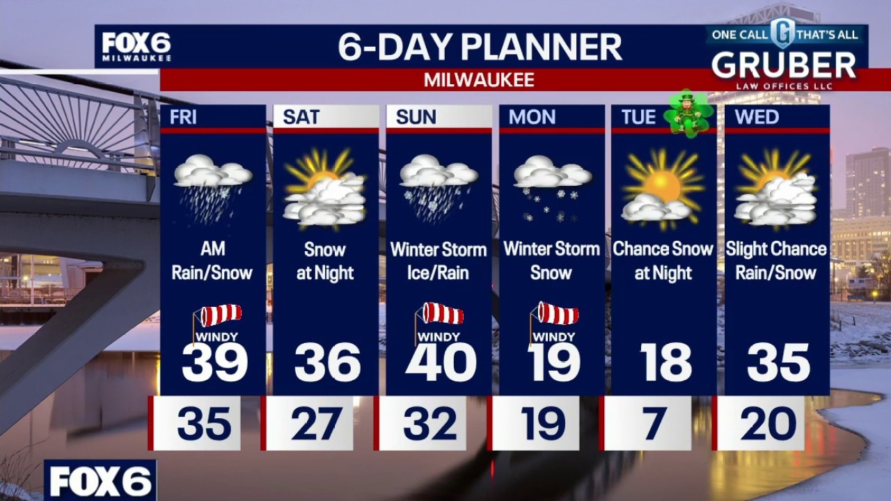 High Wind Warning from 4am to 4pm Friday for ALL of SE WI. Winter Storm Watch from 7pm Sat. to 4pm on Monday