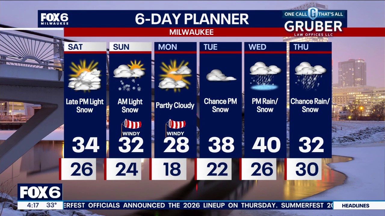Staying cloudy, chilly and blustery this weekend. There is a chance for light snow Saturday night into Sunday morning, then a few more chances for snow and wintry mix next week.