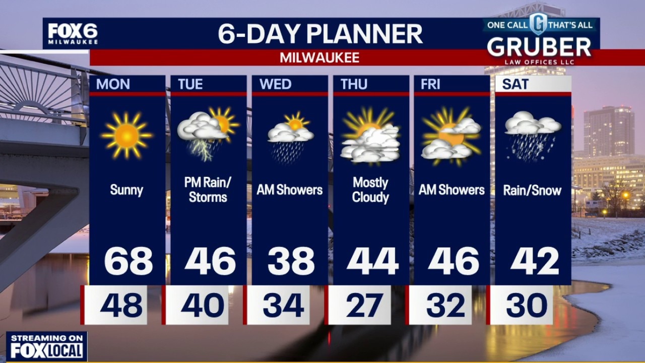 Southern Wisconsin starts the week on a spring-like note with temperatures pushing into the upper 60s Monday and potentially tying or breaking daily records.