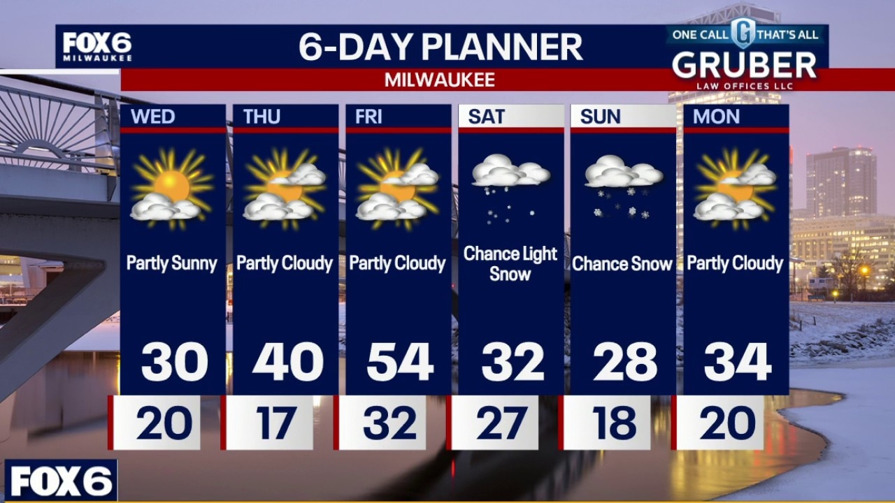 Brisk northwest winds and a few early flurries give way to clearing skies and colder air midweek, with lows dropping into the teens Wednesday night.