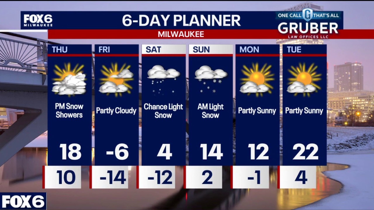 Dangerous Arctic cold dominates the forecast starting later Thursday through the end of the week, with wind chills plunging to near 40 below zero at times. Brief snow showers and blowing snow may cause sudden travel issues at times, but snowfall amounts remain generally light.