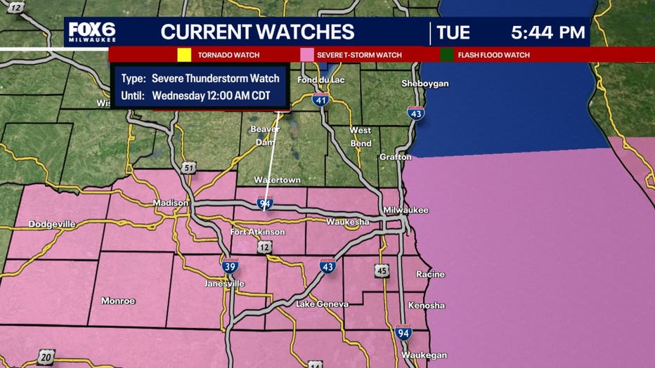 Additionally, the National Weather Service issued a severe thunderstorm warning for Racine County and Kenosha County until 8:45 p.m.