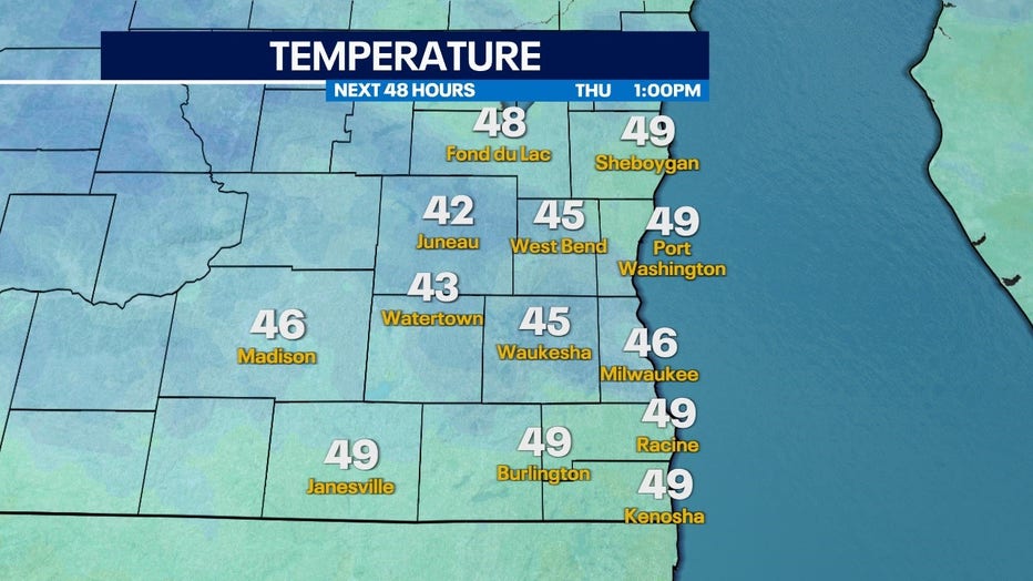 Temperature forecast for Thursday afternoon, Oct. 13