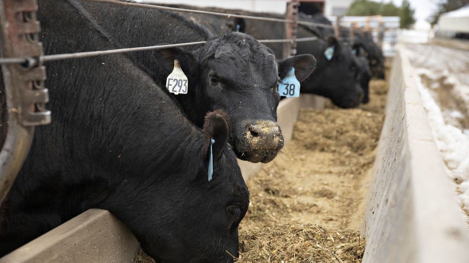 Angus bulls eat in a pen at Woodhill Farms in Viroqua, Wisconsin. (Daniel Acker/Bloomberg via Getty Images)