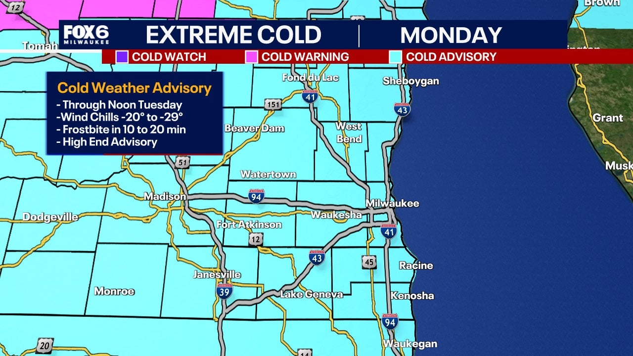MILWAUKEE - The National Service has issued a Cold Weather Advisory through 12 p.m. Tuesday, Feb. 18 for wind chill values that can dip as low as -20°F to -29°F below zero.