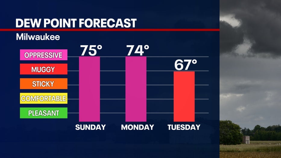 High dew points may linger through Monday, then begin to drop back to 60s Tuesday and the rest of the week.