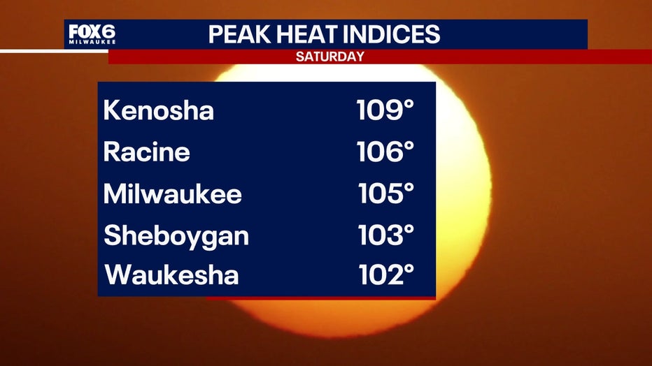 Heat indices on Saturday reached as high as 109°.