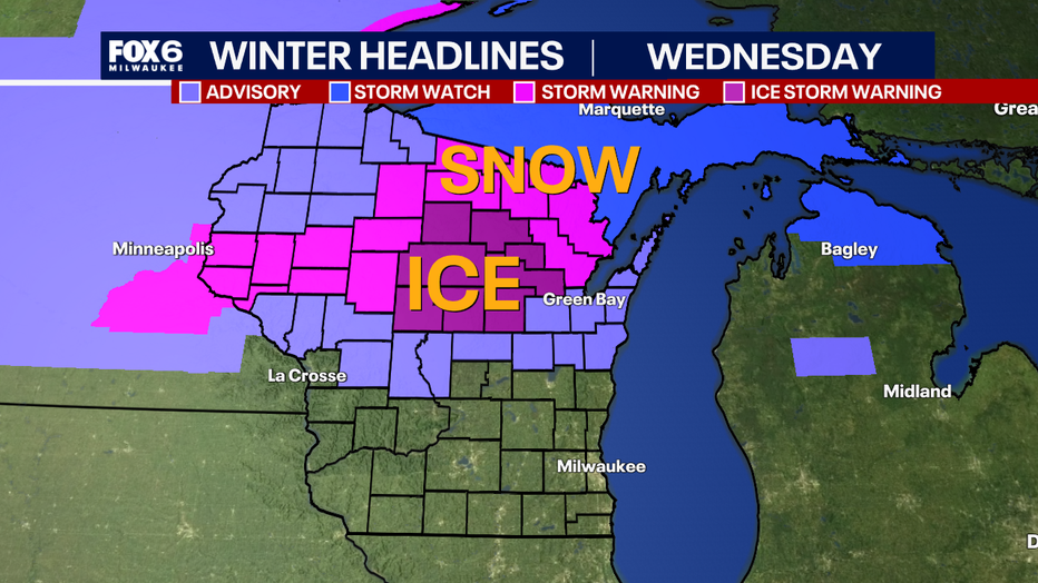 MILWAUKEE - Central and northern Wisconsin have winter headlines spread across the state, from winter weather advisories to winter storm warnings and even ice storm warnings.