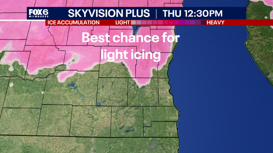 While the worst will be north of southeast Wisconsin, our area is not in the clear. Areas north of I-94, especially in Washington, Dodge, Fond du Lac, and Sheboygan counties, have the best chance for light icing of a glaze to a few hundredths of an inch.