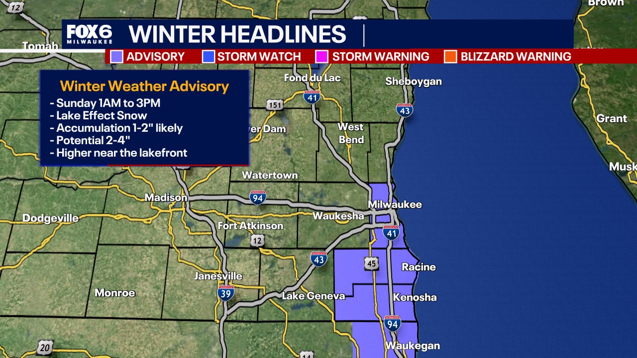MILWAUKEE - The National Weather Service has issued a winter weather advisory for Milwaukee, Racine and Kenosha counties from the morning into the afternoon Sunday, Jan. 25.